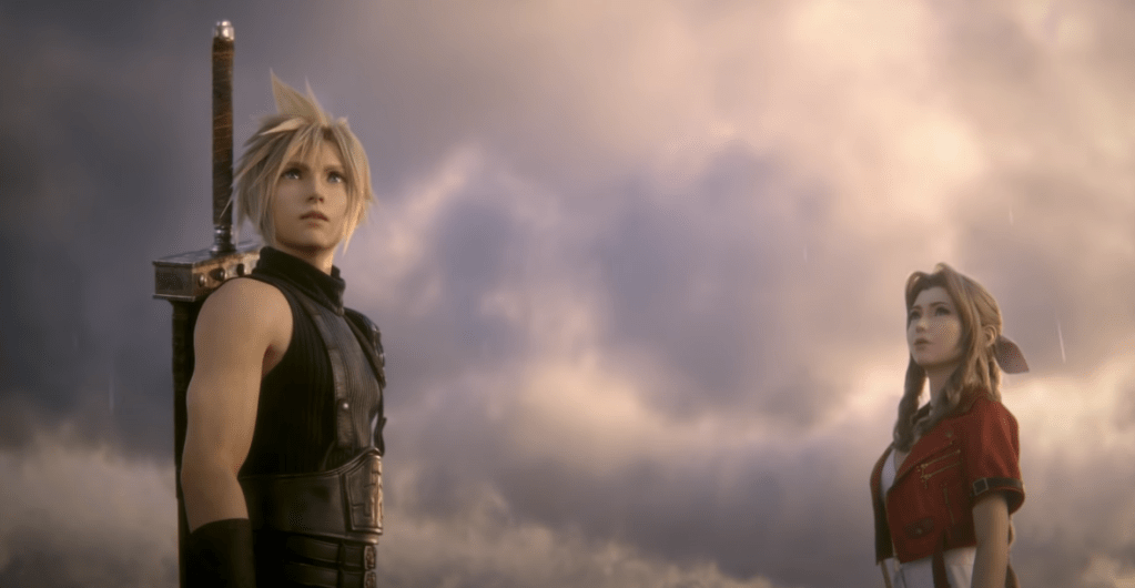 But in Remake, we also see Cloud standing in the rain – next to Aeris, in the very final moments of the game, and seconds before Hollow begins to play. Cloud and Aeris have another conversation in the rain in an extended ending follow the DLC Intermission.