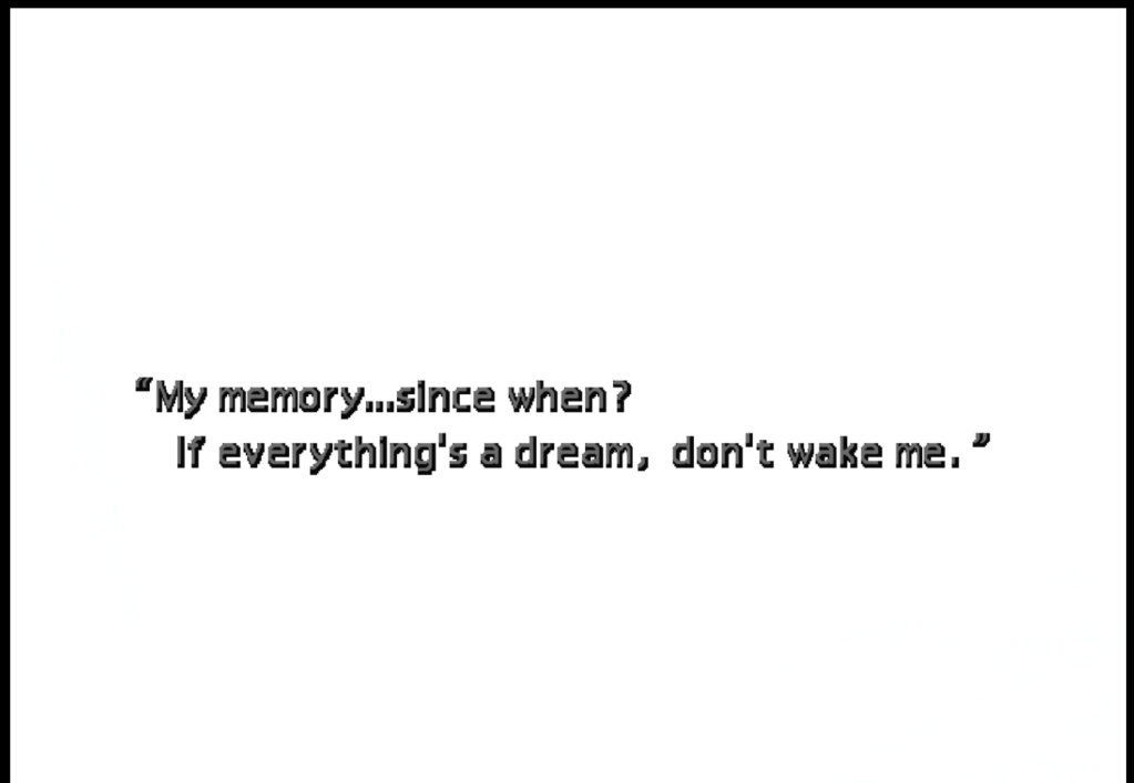 Cloud invokes the idea of a dream of this person, and not knowing if it were real or not. One interpretation might be less literal – that after this person’s death, they felt as far away as a dream. In Aeris’s case, however, this line is not metaphorical. Cloud has several dreams throughout the Compilation – and most are about Aeris.