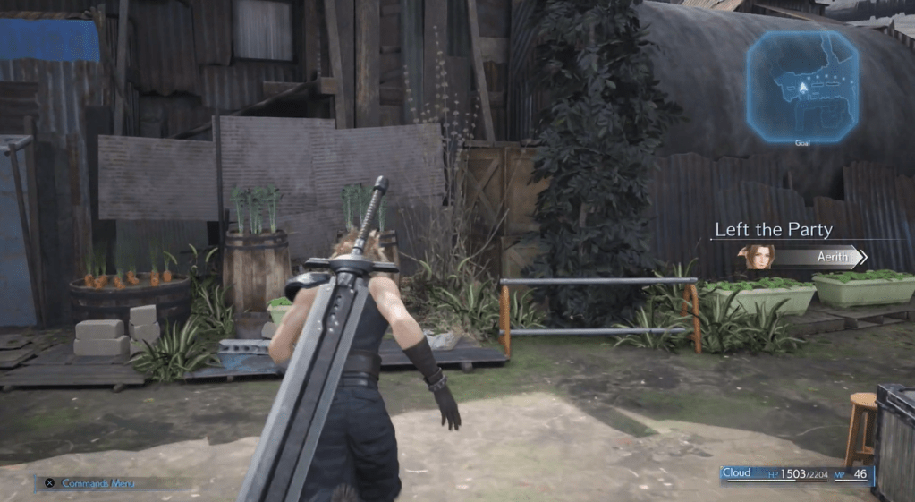 In Final Fantasy VII Remake, Cloud has another dreamlike encounter with Aeris. In Chapter 14, Aeris has been captured by Shinra, and Cloud, Barret, and Tifa resolve to save her. In the middle of the night, however, Cloud sees Aeris appear in the gardens outside her house – or at least, a phantom of Aeris.