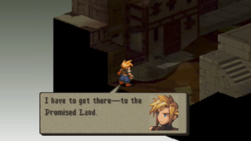 Cloud: Let’s go, Ramza. I can’t stay here. I have to get there – to the Promised Land.
