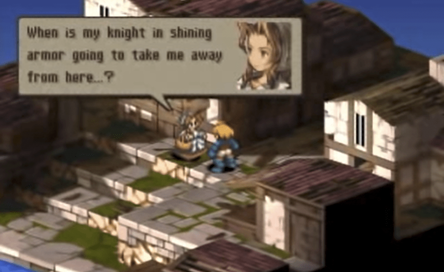 The aptly-named Final Fantasy Tactics is a tactical role-playing game, deviating from Final Fantasy‘s classic battle system but still retaining its epic storytelling and character-driven drama. Released in Japan in June 1997 and in the U.S. in January 1998, it was unleashed unto fans only half a year after the extraordinary success of Final Fantasy VII. Being simultaneously in development, then, it’s no surprise at all that FF7’s two leading characters make a cameo appearance: Cloud and Aeris.