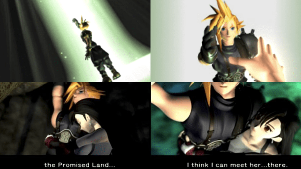 In response, Cloud tells Ramza where he has to go, and the answer is the Promised Land – not “back to my friends” or “back to Midgar” or “back to my Planet.” The Promised Land – the place where Aeris will be – is where he wants to be.