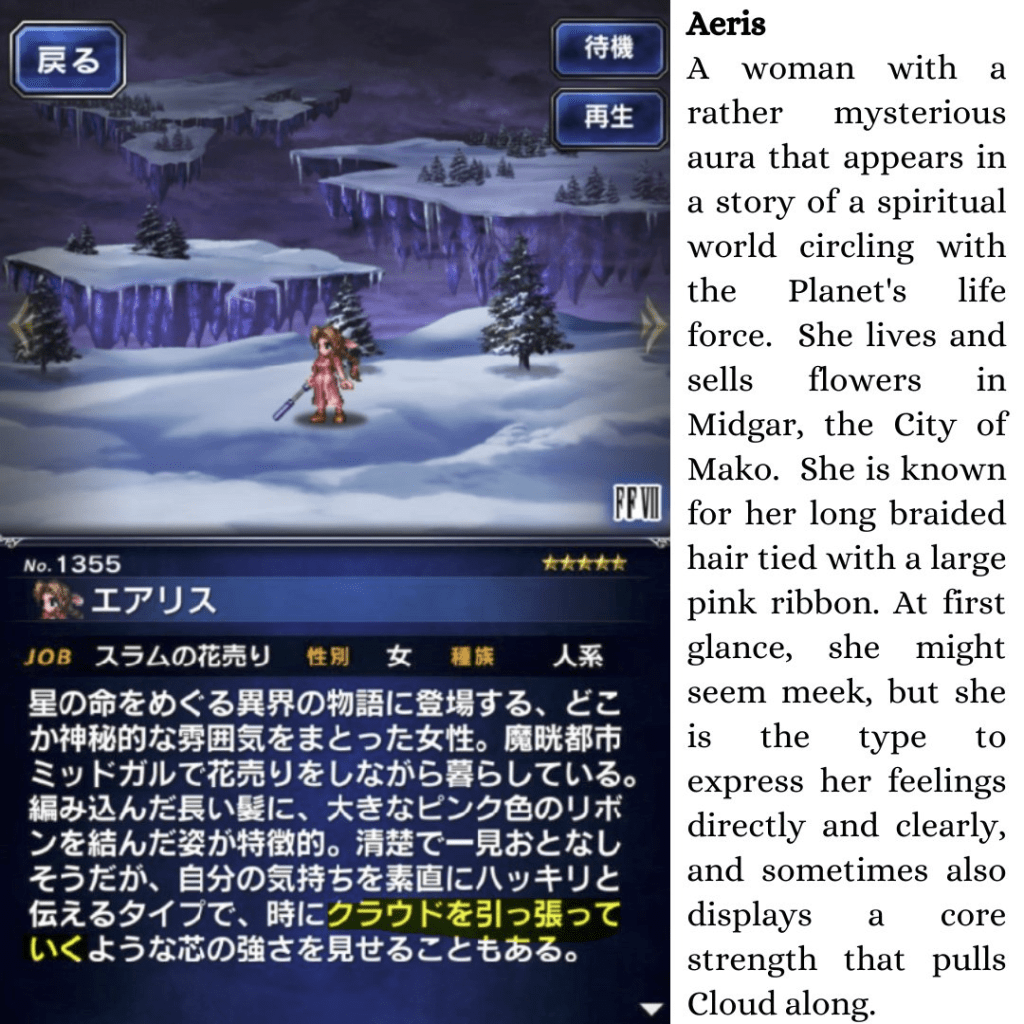 Final Fantasy Brave Exvius, Aerith’s profile