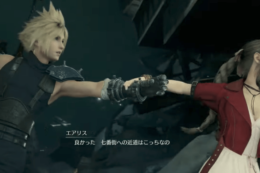 At any rate, the episode positions Aeris as a love interest for Cloud and the player – complementing Tifa’s introduction, which uses the water tower promise scene as a similar narrative device.