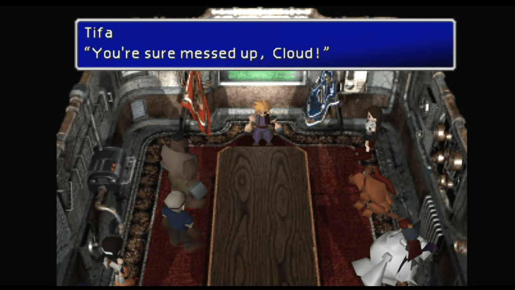 Indeed, bearing “testament” to Cloud’s childhood is Tifa’s primary – if not only – role in the game. Unlike the other characters, Tifa does not have a standalone sequence about her past, and instead, her backstory serves to complement and offer perspective on Cloud’s own past. To treat Tifa as a bystander to Cloud’s crisis-counseling is a disservice to her character.