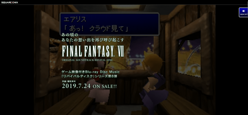 Go to this soundtrack’s official Japanese website here. What do you see after the intro video? A background video of Cloud and Aeris’s date is one of three possibilities (the other is Cloud and Aeris’s church reunion video, and the third is Sephiroth in Nibelheim.)