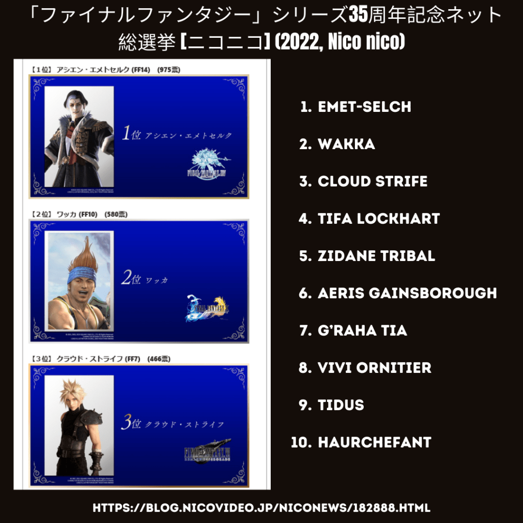 In October 2014, a second official Final Fantasy character popularity poll was conducted!