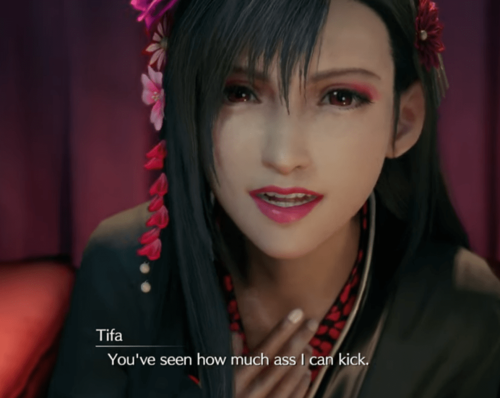 In Remake, a new aspect was added to her character: she is portrayed as a people-pleaser who can’t help but want to make others happy. Additionally, some of her traits are expanded upon – like her feelings of self-doubt, which were largely only tied to the mystery of the Nibelheim incident in the OG – and others were diminished or reimagined, like her early-game spunky lines.