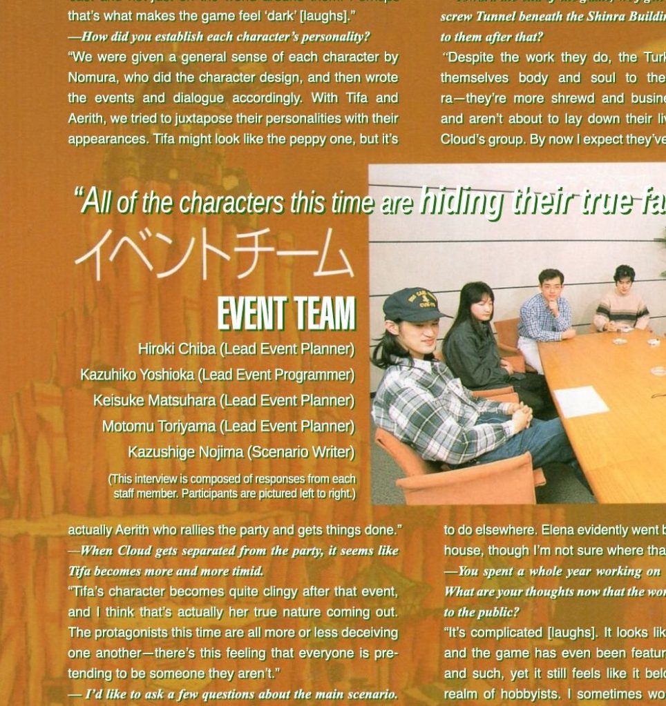 I’ve heard many mistranslated or out-of-context quotes in my years as a Final Fantasy VII fan, but I don’t care either to go out of my way to delve into CT fandom spaces just to make a running list of gotchas. These days, thanks to efforts from the likes of the Shinra Archaeology Department fan group, significantly more material has been translated in full with ship-neutral intentions, allowing fans who don’t speak Japanese to access old Ultimania materials, interviews, and other sources directly. If something seems suspicious to you, check out another translation and read the full context, or even find the original Japanese source and chat about it with a Japanese speaker. It’s not 2005 anymore: these days, we’re lucky to have a fandom – shippers included! – that love to be source-stewards and archive these things.