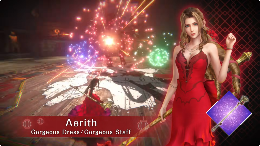 Furthermore, her corresponding weapon’s ability has a little bonus Clerith reference. The Gorgeous Staff uses the ability Luminous Bloom. The animation? Aerith generates orbs of light in her hand and chucks them at the enemy, where they explode into colorful fireworks.