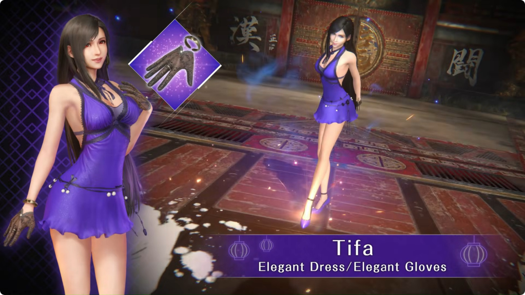 Ever Crisis will also feature Tifa’s purple dress, which also calls back to the original game. But unlike Aerith’s dress, Tifa’s purple dress is not dependent on affection points and does not affect any scenes. In fact, Tifa’s purple dress is treated as the default – Cloud can only unlock Tifa’s other two dresses if he completes all her side quests, and thus wins a scene where Tifa asks him what kind of style suits her. Tifa will wear her purple dress if the player did not complete her quests, or specifically selected Elegant / Mature as a response to Tifa’s question.